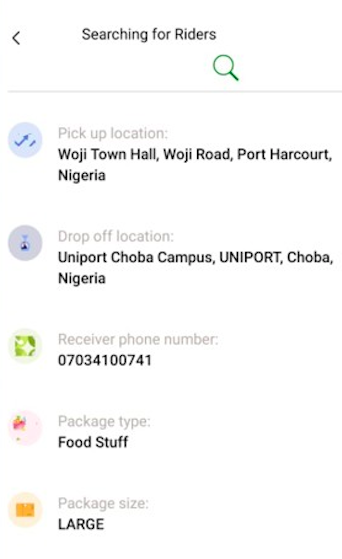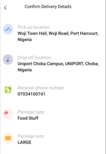 Once your account is created, you simply tap on the “Send/Receive Package” button, input the details (address, phone number, item description) of where the package will be picked from and where it is to be delivered.